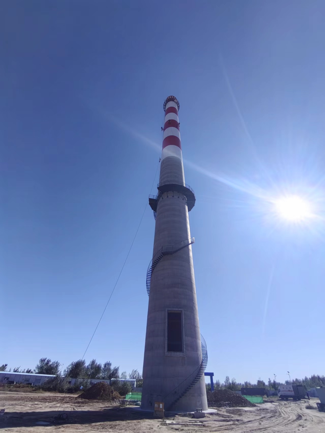- 混凝土煙囪新建該混凝土煙囪新建工程的特殊性,在安全、快捷、方便的目標下,根據(jù)本公司現(xiàn)場考察,依托本公司雄厚的技術(shù)實力和豐富的高空作業(yè)的經(jīng)驗,結(jié)合施工現(xiàn)場復雜的施工環(huán)境特制定如下施工方案